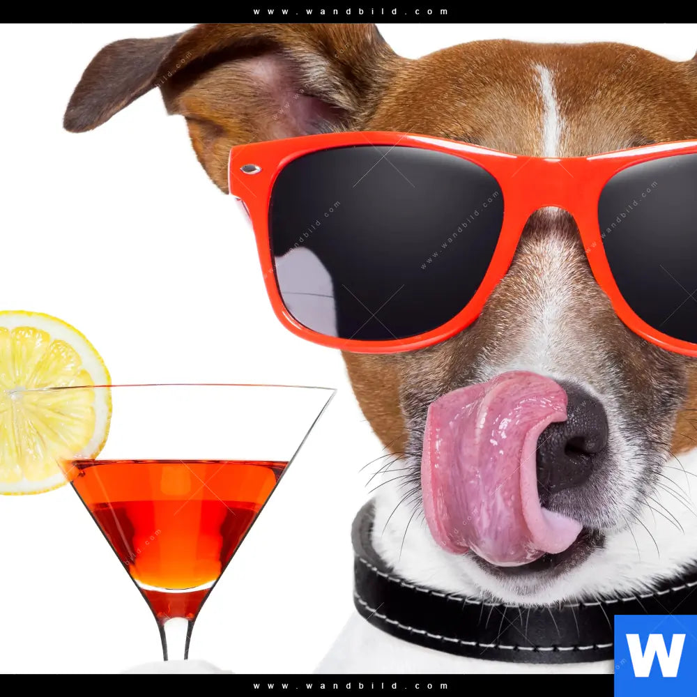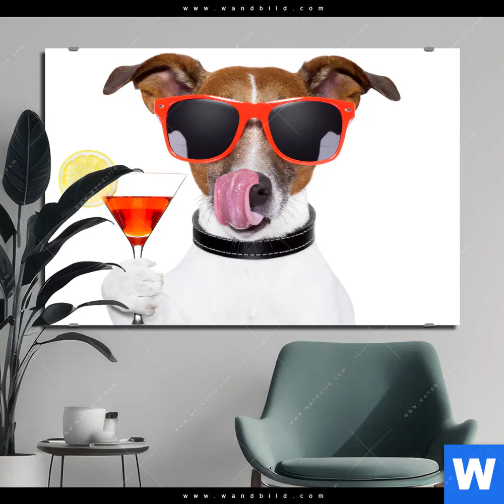 Alu-Dibond Bild | Lustiger Hund mit Drink | Querformat