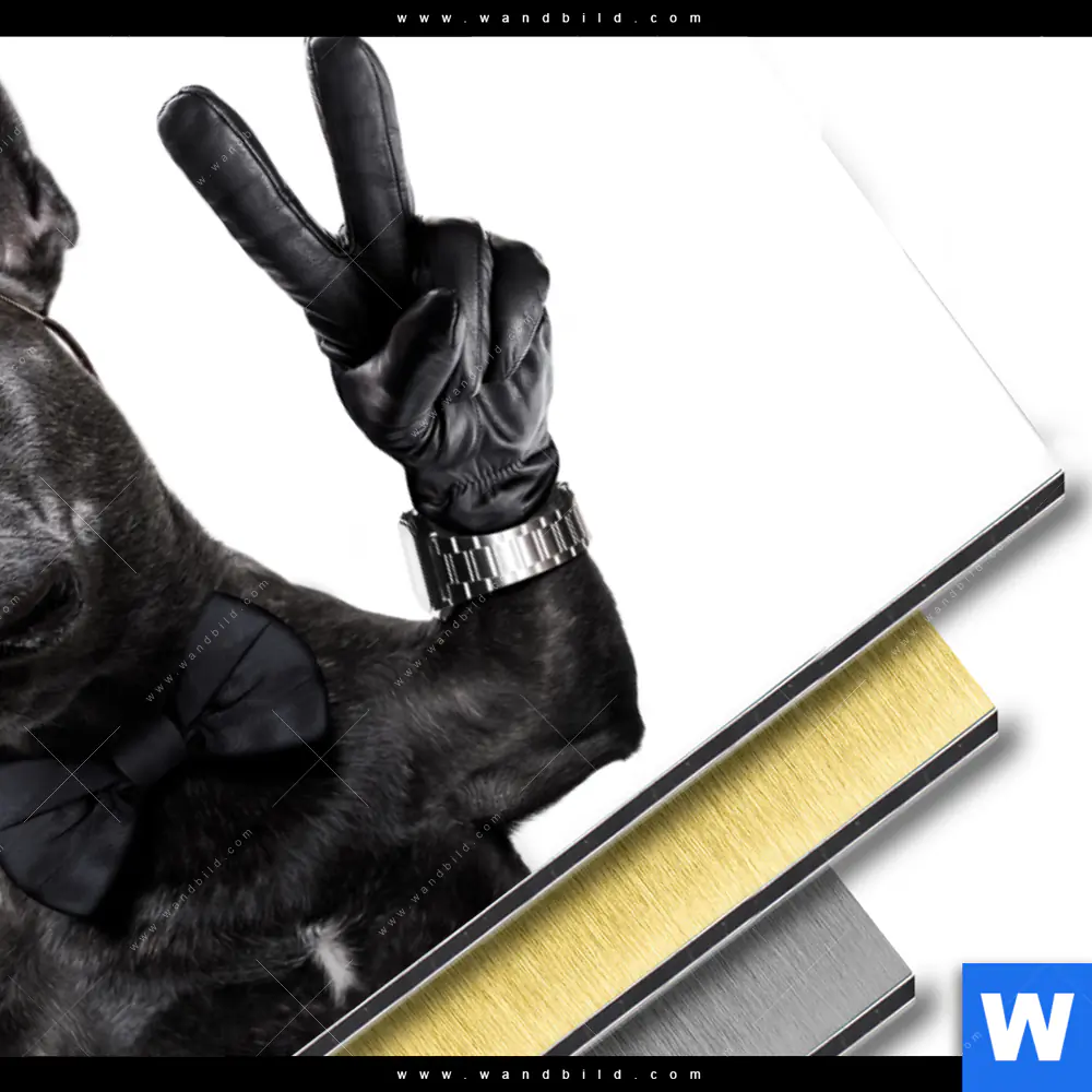 Aluminiumbild gebürstet | Bulldogge mit Martini | Querformat