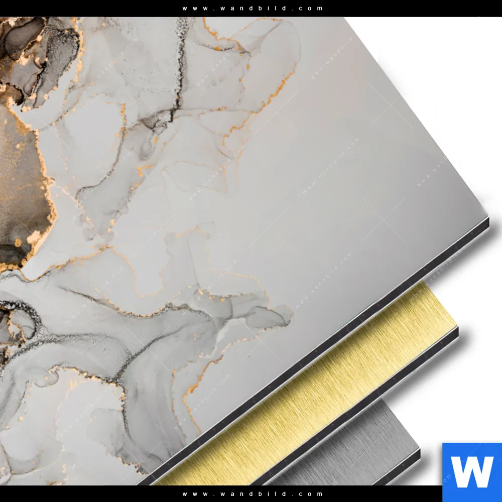 Aluminiumbild gebürstet | Fluid Art Gold | Querformat