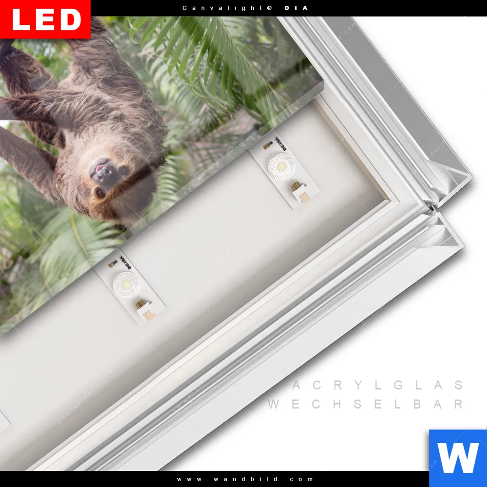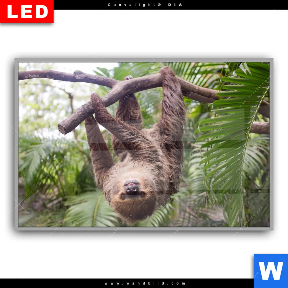 Canvalight® DIA Leuchtbild | Faultier streckt Zunge raus | Querformat