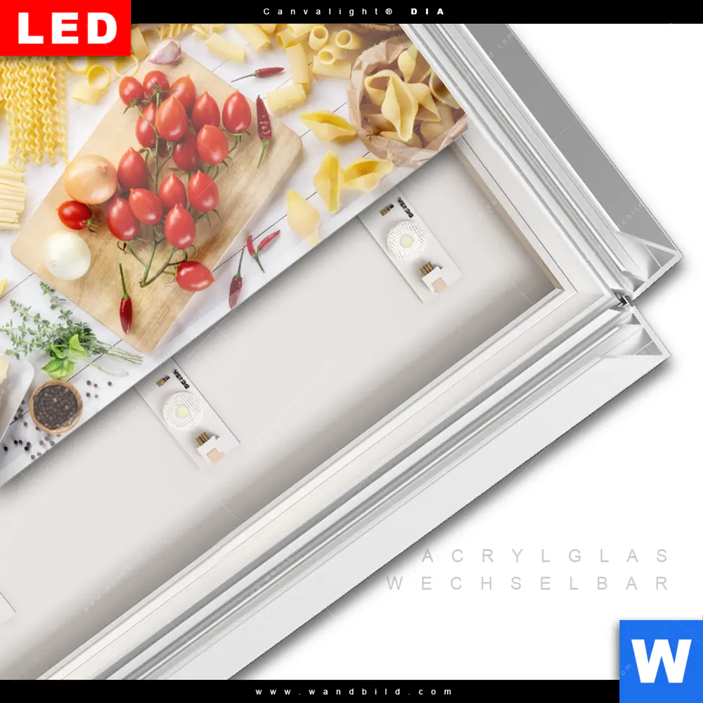 Canvalight® DIA Leuchtbild | Italienische Pasta Vielfalt | Querformat