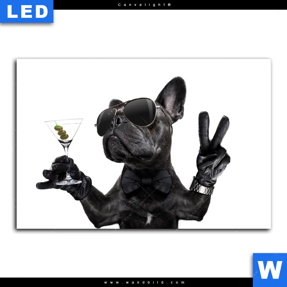 Canvalight® Leuchtbild | Bulldogge mit Martini | Querformat