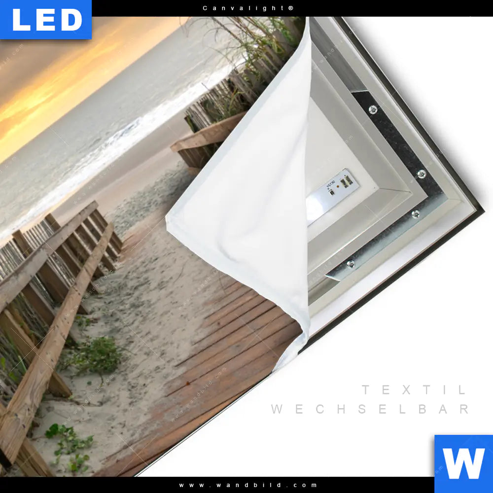 LED-Textilrahmen-Bild mit austauschbarem Strand - Meer, Landschaften Textil-Druck (Wechselbild)