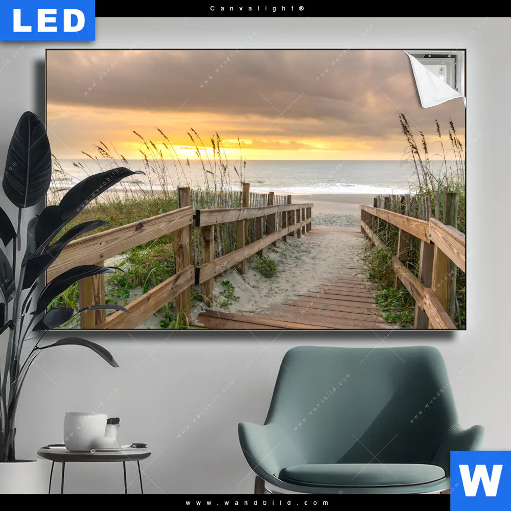 Canvalight® Leuchtbild | Sonnenuntergang am Strandweg | Querformat