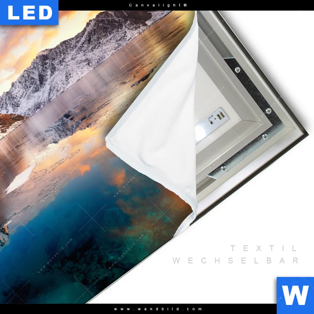 LED-Textilrahmen-Bild mit austauschbarem Landschaften Textil-Druck (Wechselbild)