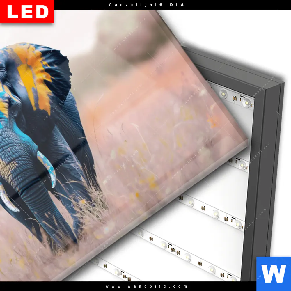 Wechselmotiv Acrylglas Canvalight® DIA | Elefant - Farben der Wildnis | Querformat