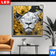 Aluminiumbild gebürstet | Weiße Löwin mit Goldblüten | Hochformat