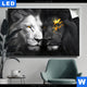 Aluminiumbild gebürstet | Zwei Löwen Schwarz & Weiß | Quadrat