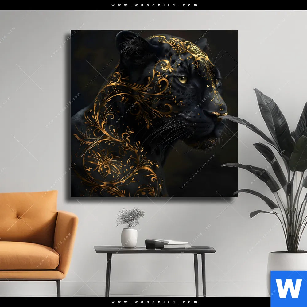 Leinwandbild | Panther mit goldenen Ornamenten | Quadrat