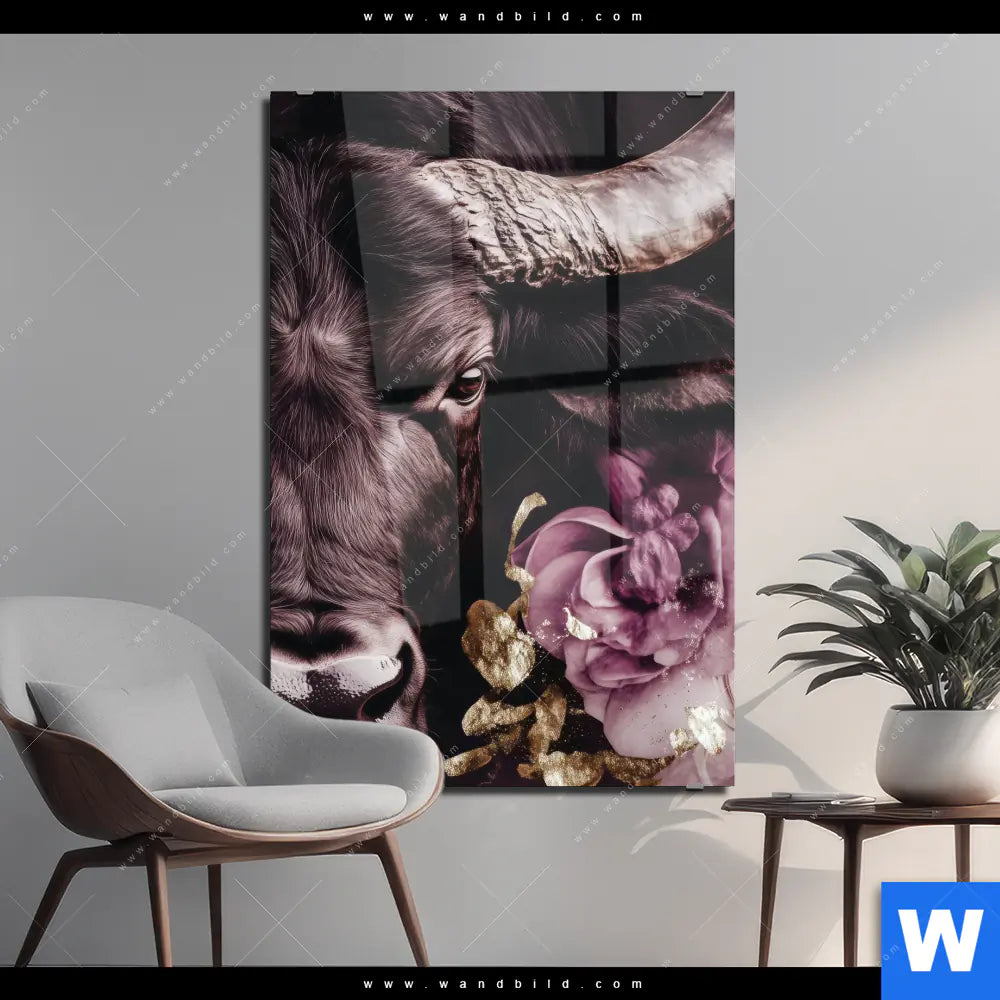 Acrylglasbild | Stier mit Blumen | Hochformat