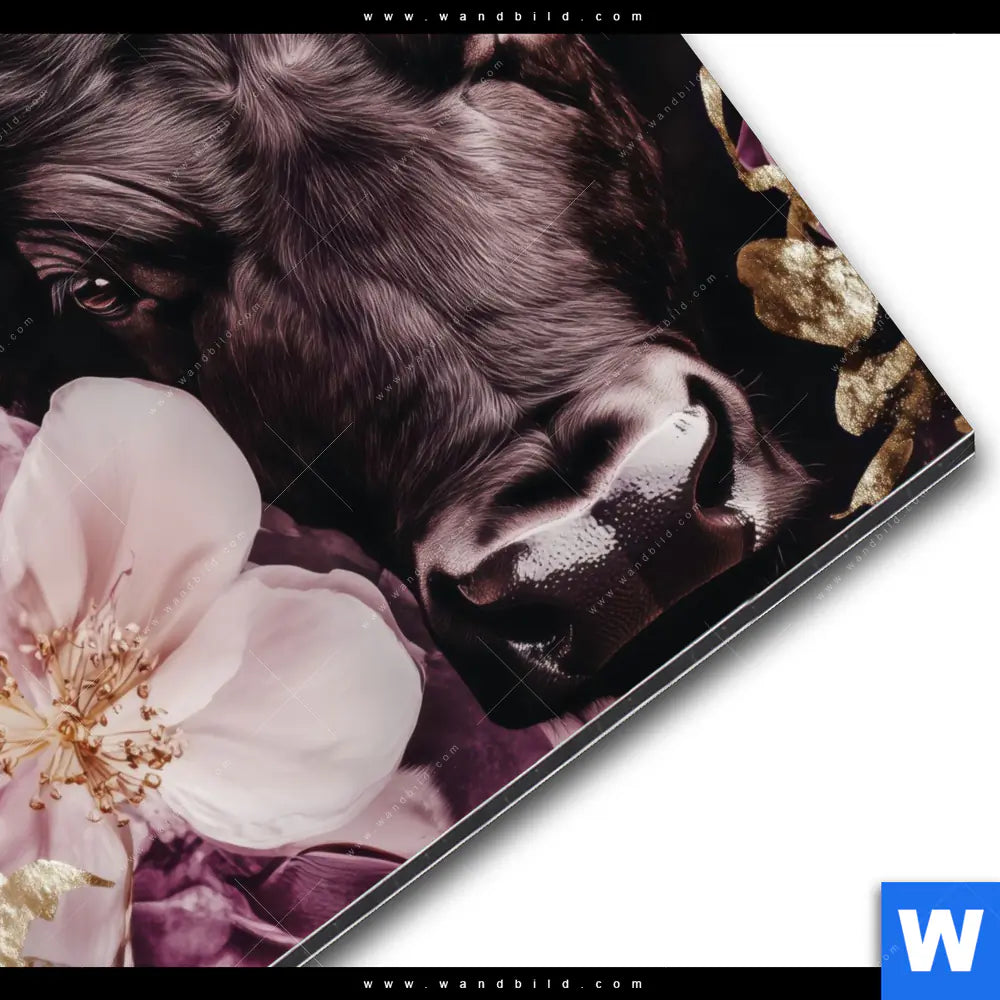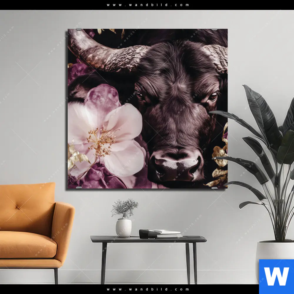 Alu-Dibond Bild | Stier mit Blumen | Quadrat