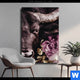 Aluminiumbild gebürstet | Stier mit Blumen | Hochformat