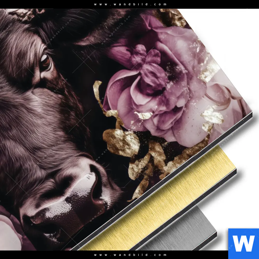 Aluminiumbild gebürstet | Stier mit Blumen | Querformat
