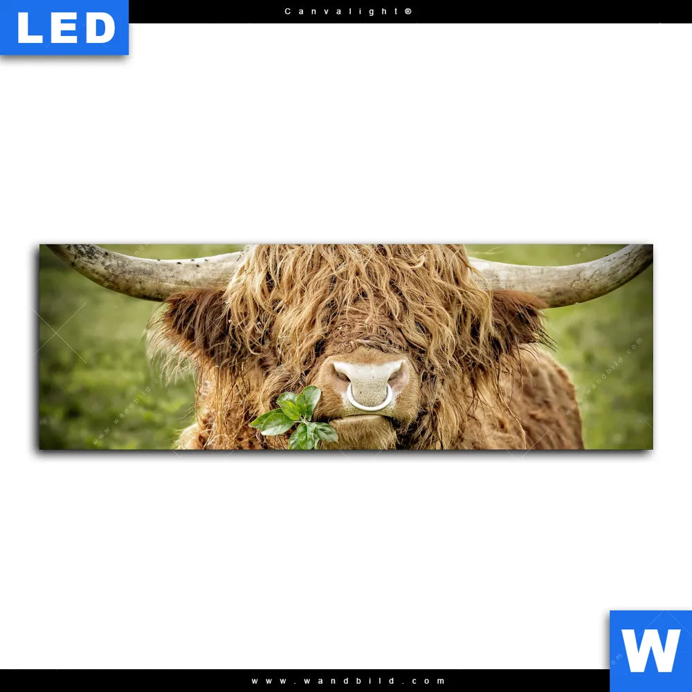 Canvalight® Leuchtbild | Hochland-Rind mit Nasenring | Panorama