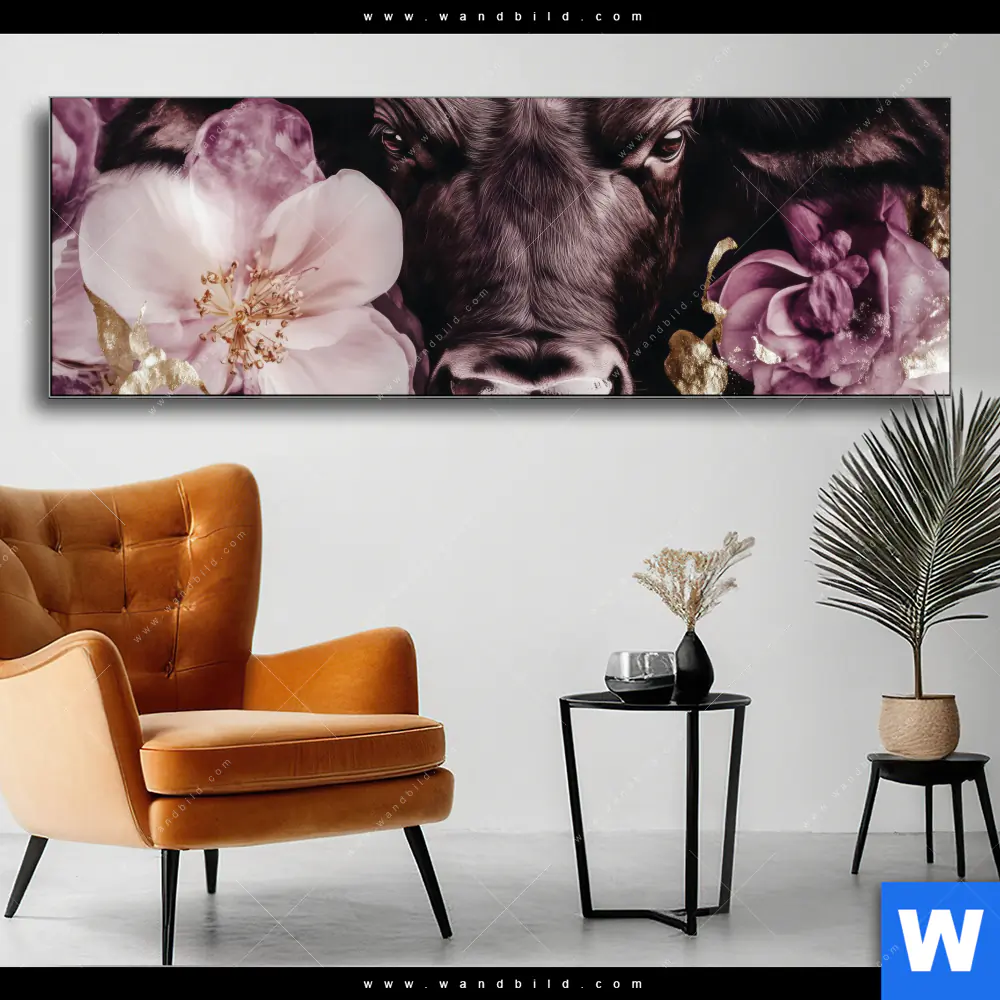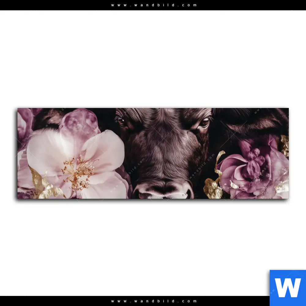 Wechselmotiv Textil | Stier mit Blumen | Panorama
