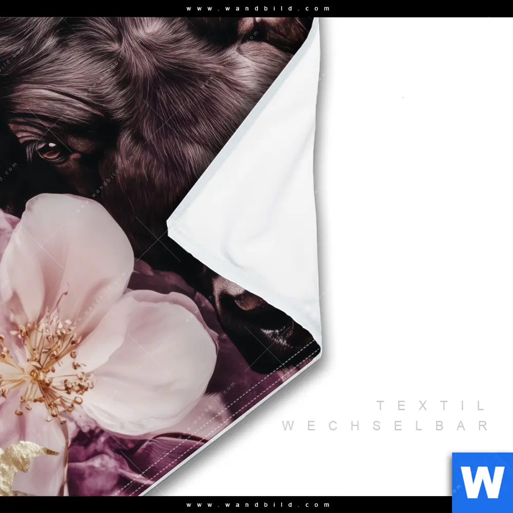 Wechselmotiv Textil | Stier mit Blumen | Quadrat