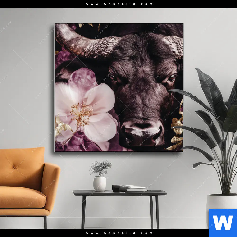 Wechselmotiv | Stier mit Blumen | Quadrat