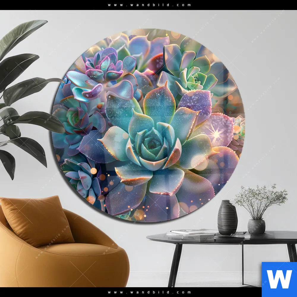 Acrylglasbild | Glänzende Sukkulenten | Rund