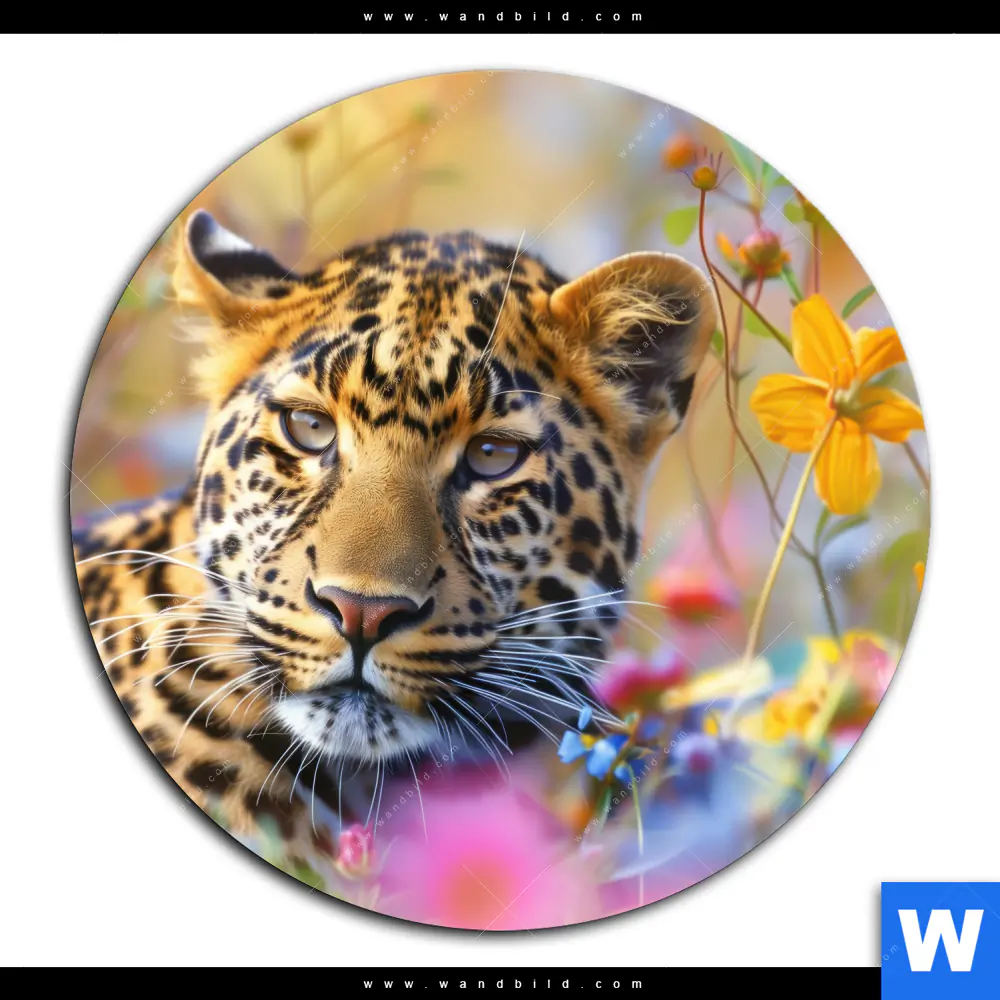 Acrylglasbild | Leopard in blühender Wildnis | Rund