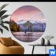 Acrylglasbild | Nebel und Regenbogen zwischen den Bergen | Rund