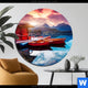 Aluminiumbild gebürstet | Fischer auf Boot Sonnenaufgang | Rund