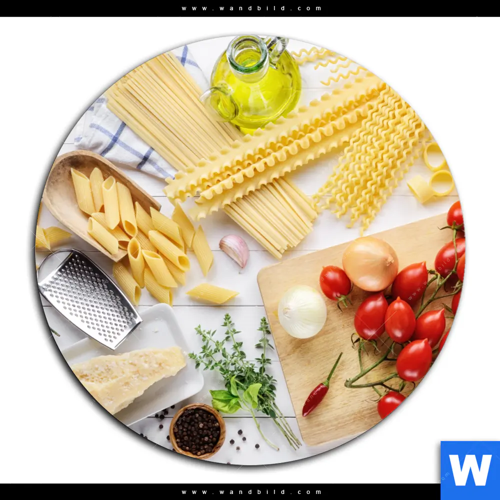 Aluminiumbild gebürstet | Italienische Pasta Vielfalt | Rund