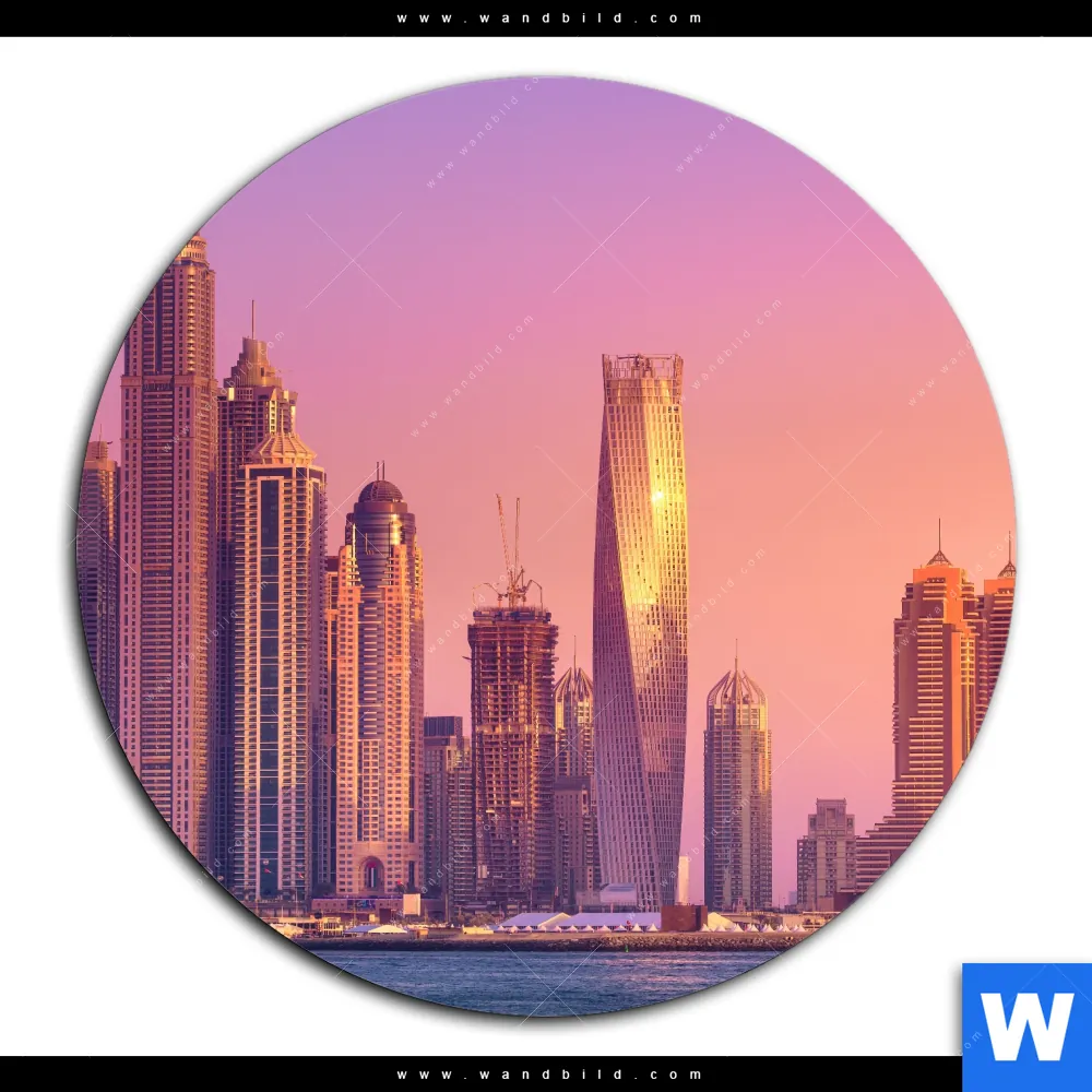 Aluminiumbild gebürstet | Sonnenaufgang in Dubai | Rund
