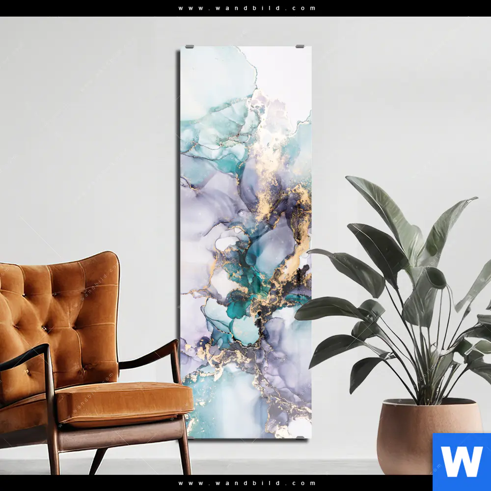 Acrylglasbild | Fluid Art Lila & Türkis | Schmal