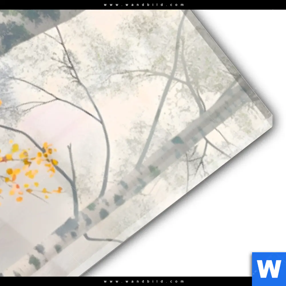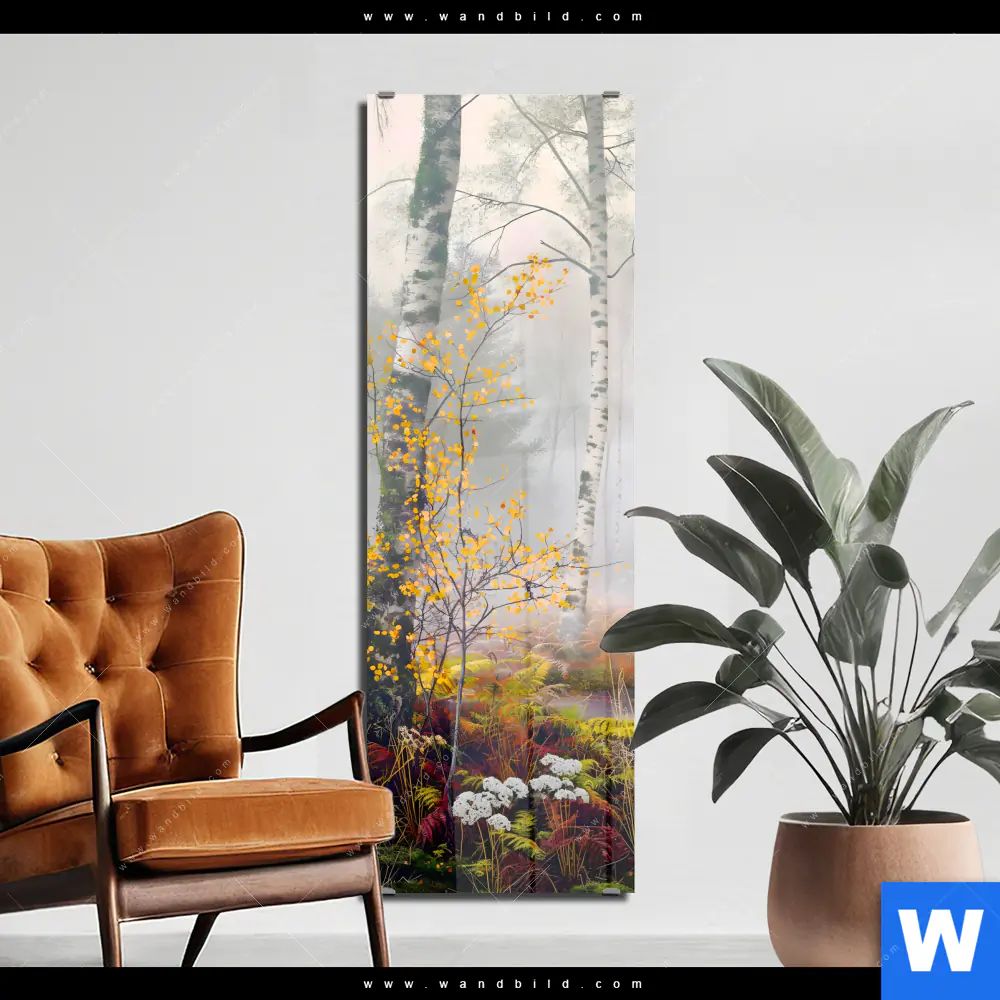 Acrylglasbild | Naturidylle - Birken im Nebel | Schmal