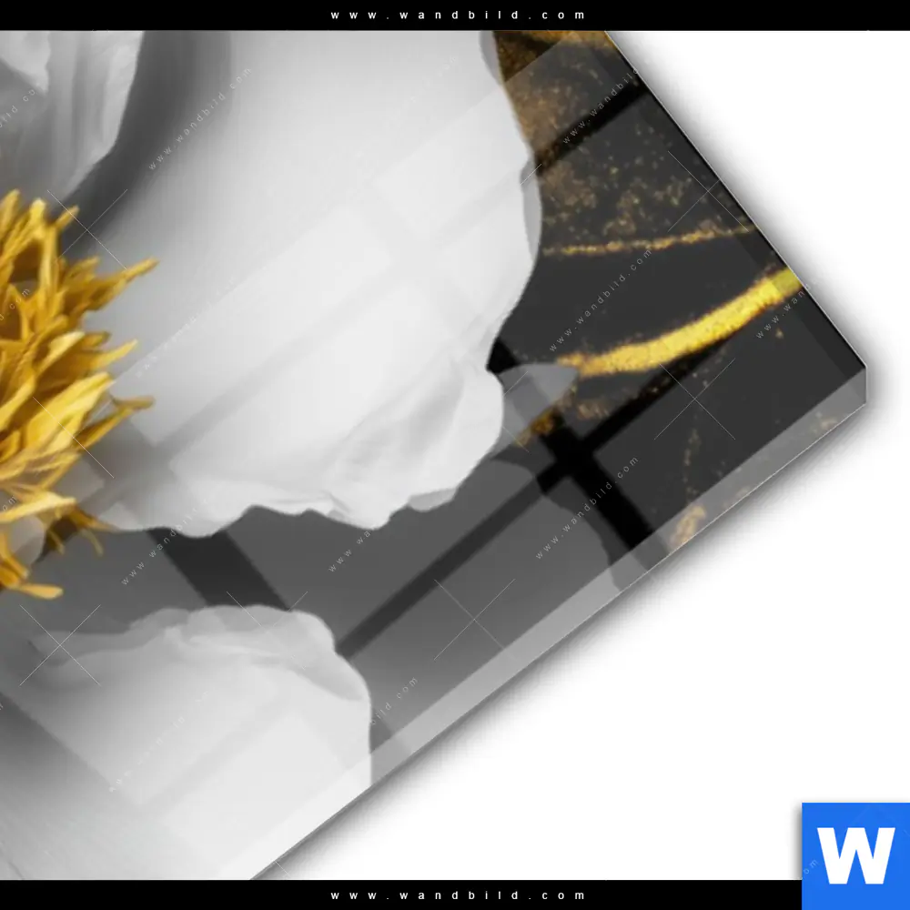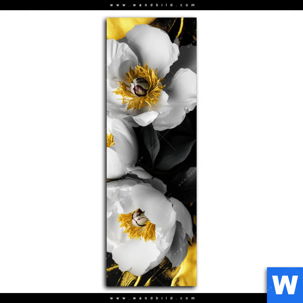 Acrylglasbild | Weiße Blumen mit Gold | Schmal