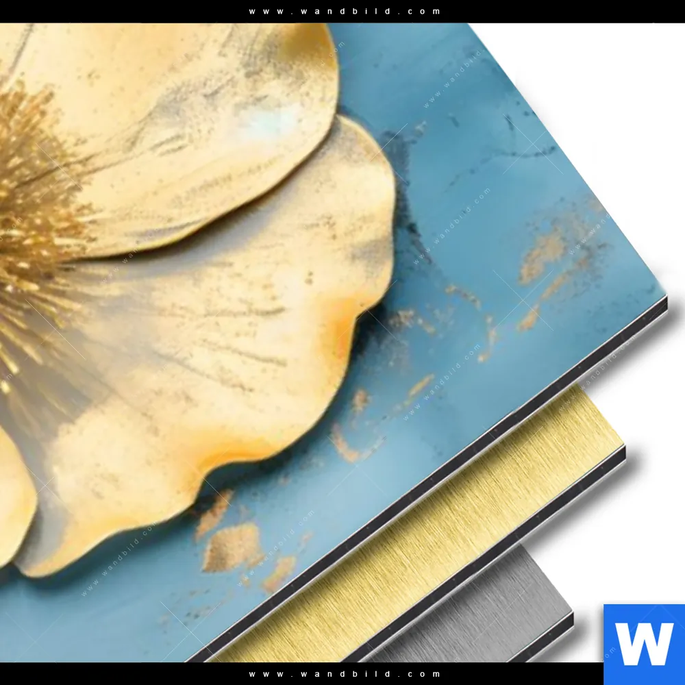 Alu-Dibond Bild | Goldene Blumen auf Blau | Schmal