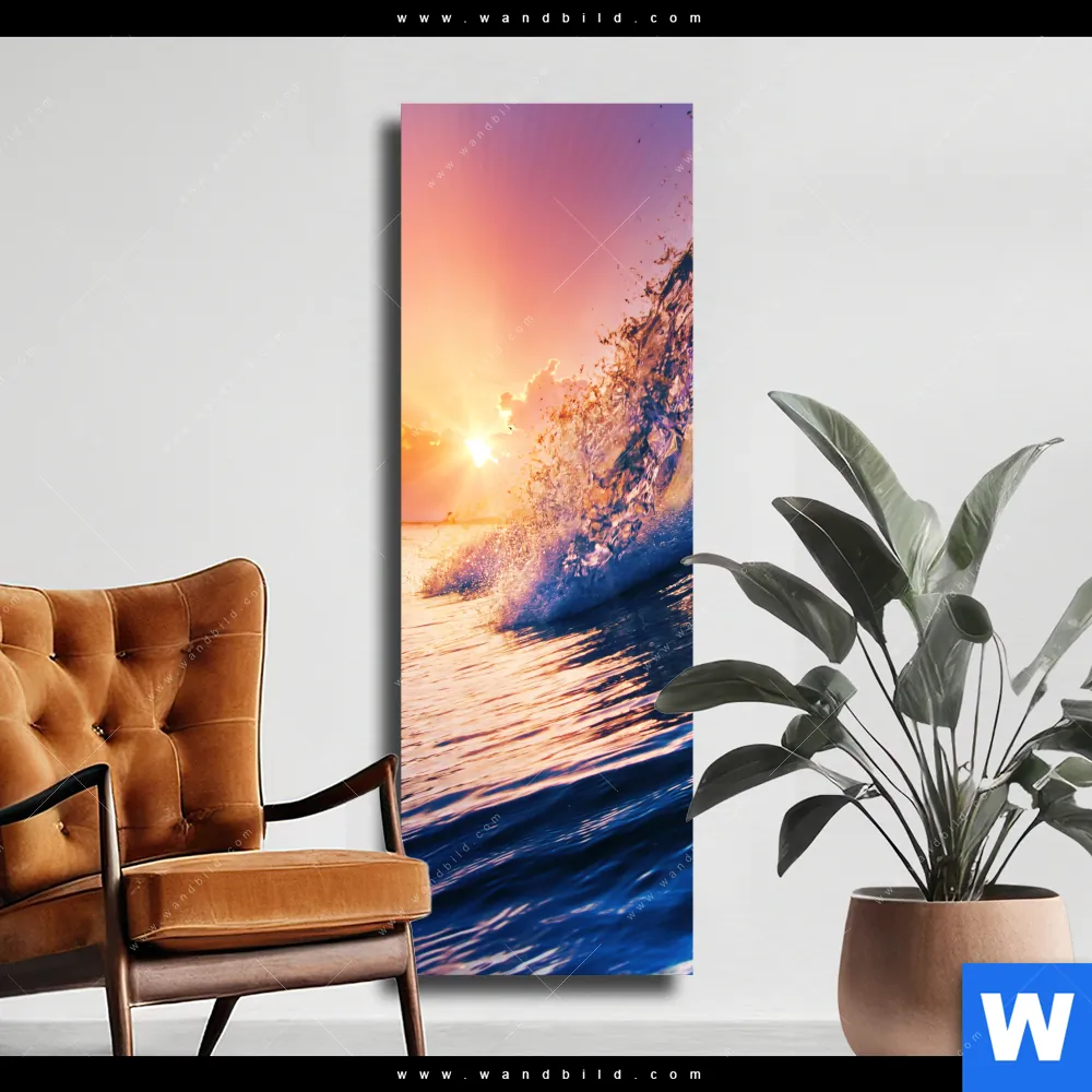 Leinwandbild | Welle im Sonnenuntergang | Schmal