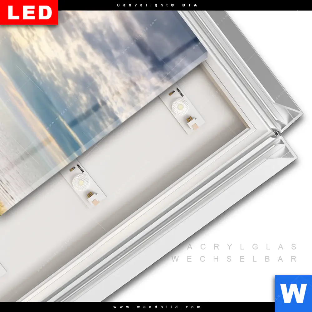 LED-Glasbild mit austauschbarem Acrylglas-Druck (Wechselbild)