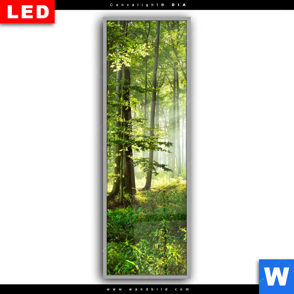 Canvalight® DIA Leuchtbild | Sonniger Morgen im Wald | Schmal