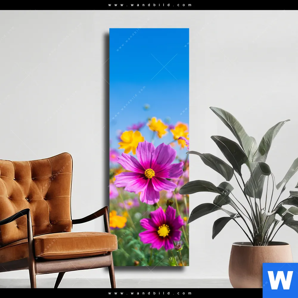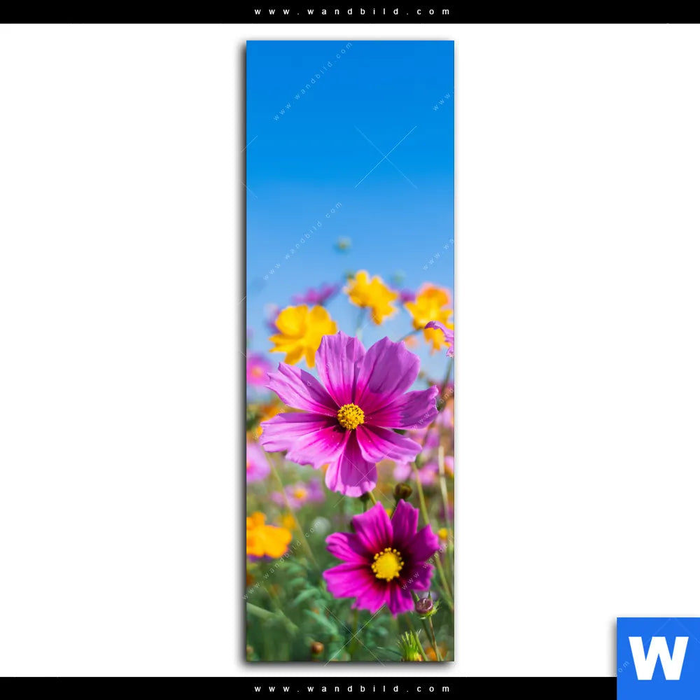 Leinwandbild | Blumenwiese unter blauem Himmel | Schmal
