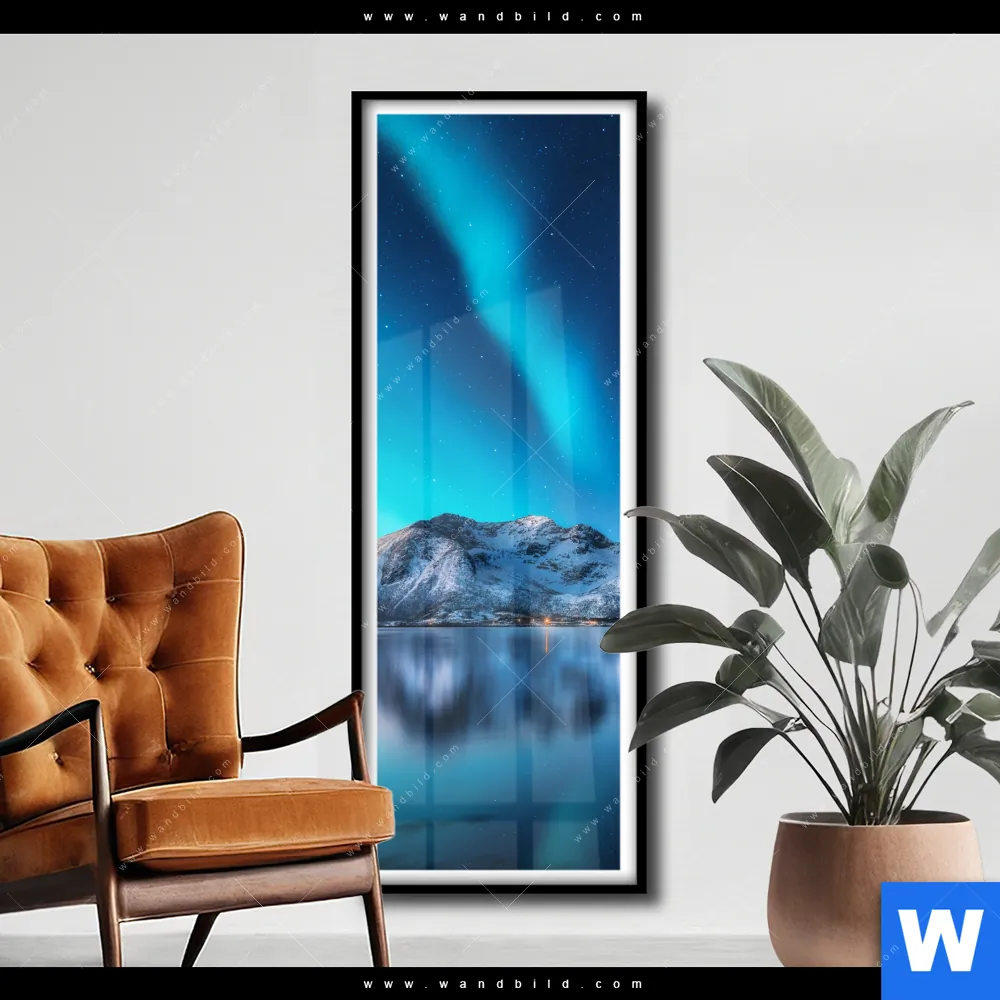 Poster | Nordlichter und schneebedeckte Berge | Schmal