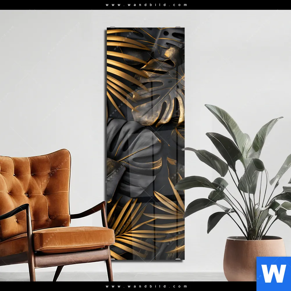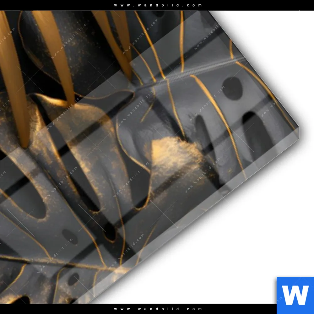 Acrylglasbild | Palmenblätter Schwarz Gold | Schmal
