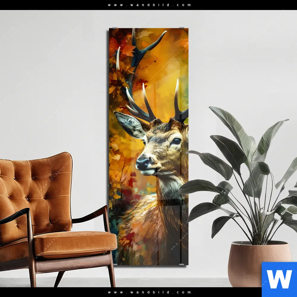 Acrylglasbild | Rothirsch im Herbstwald | Schmal