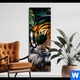 Aluminiumbild gebürstet | Bunter Tiger Schwarz | Schmal
