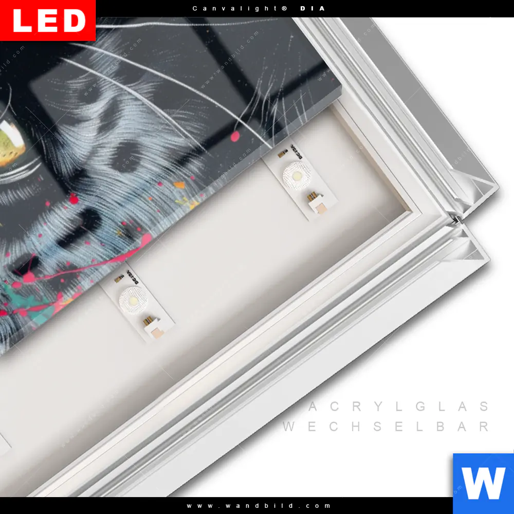 Canvalight® DIA Leuchtbild | Panther Farbexplosion | Schmal