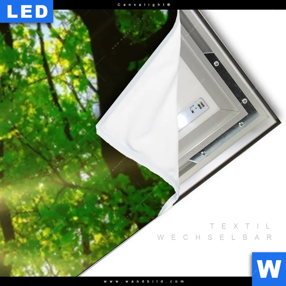 LED-Textilrahmen-Bild mit austauschbarem Landschaften, Wald - Bäume Textil-Druck (Wechselbild)