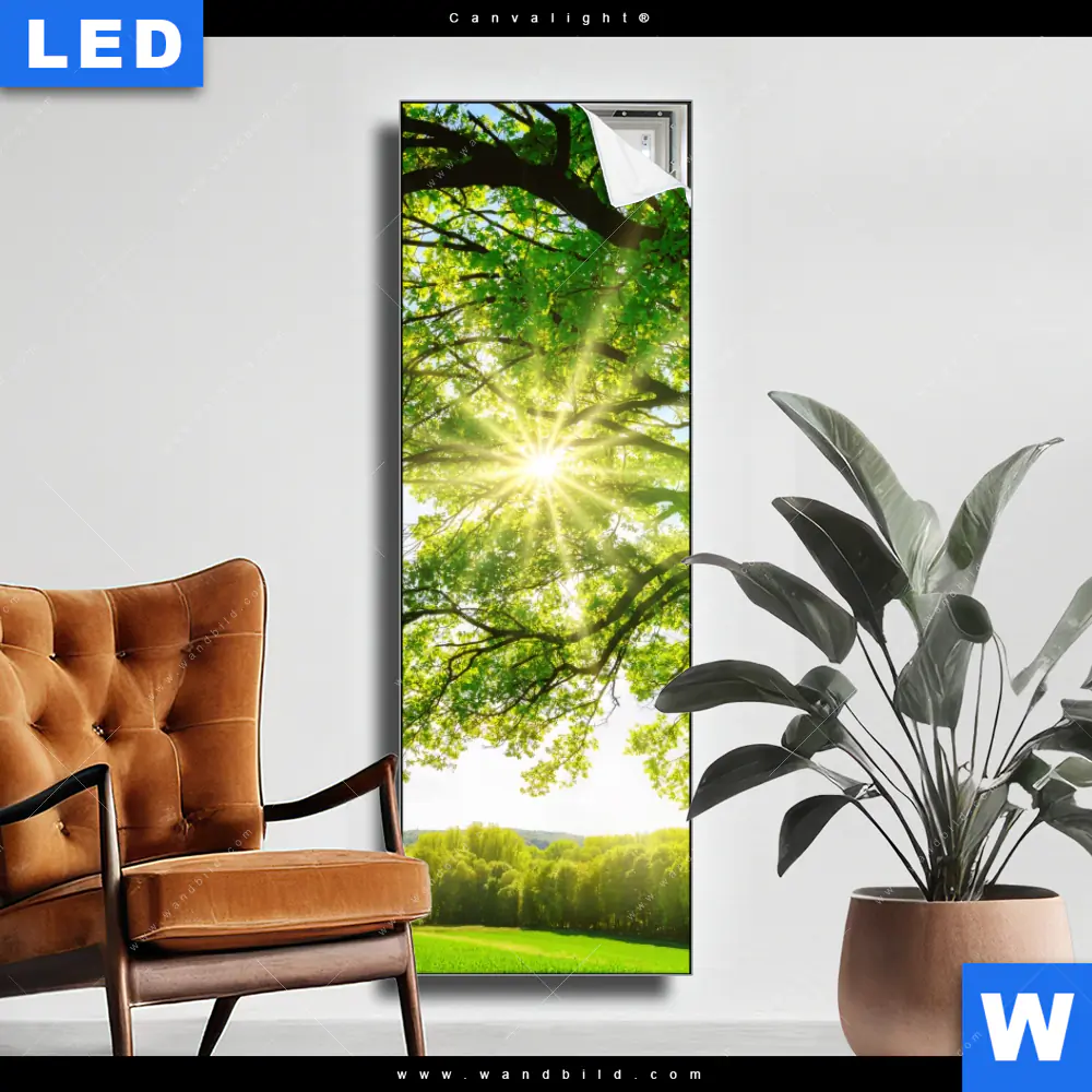 Canvalight® TEX Leuchtbild | Sonnendurchfluteter Baum | Schmal