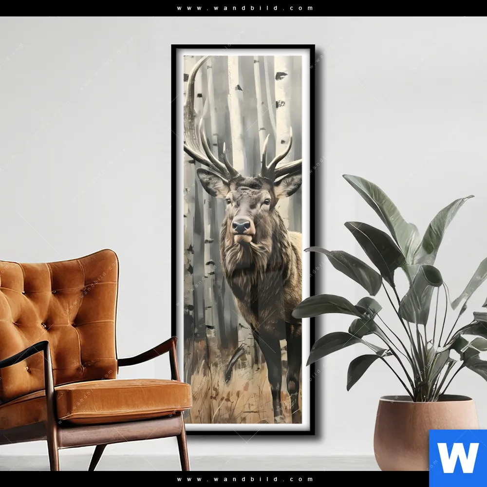 Poster | Hirsch im Birkenwald | Schmal