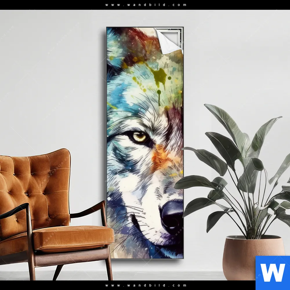 Spannbild | Wolf mit bunten Farbspritzern No. 2 | Schmal