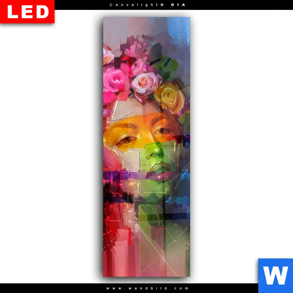 Wechselmotiv Acrylglas Canvalight® DIA | Florales Frauenporträt - Rosalie | Schmal