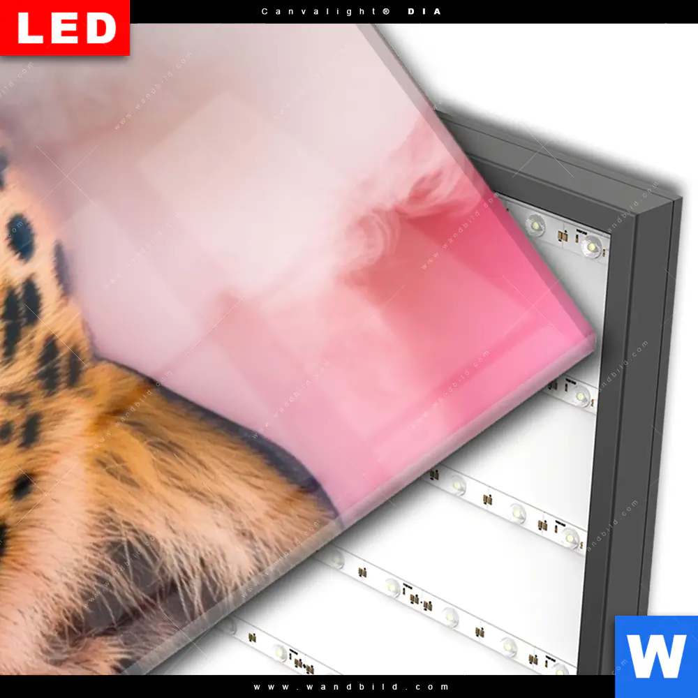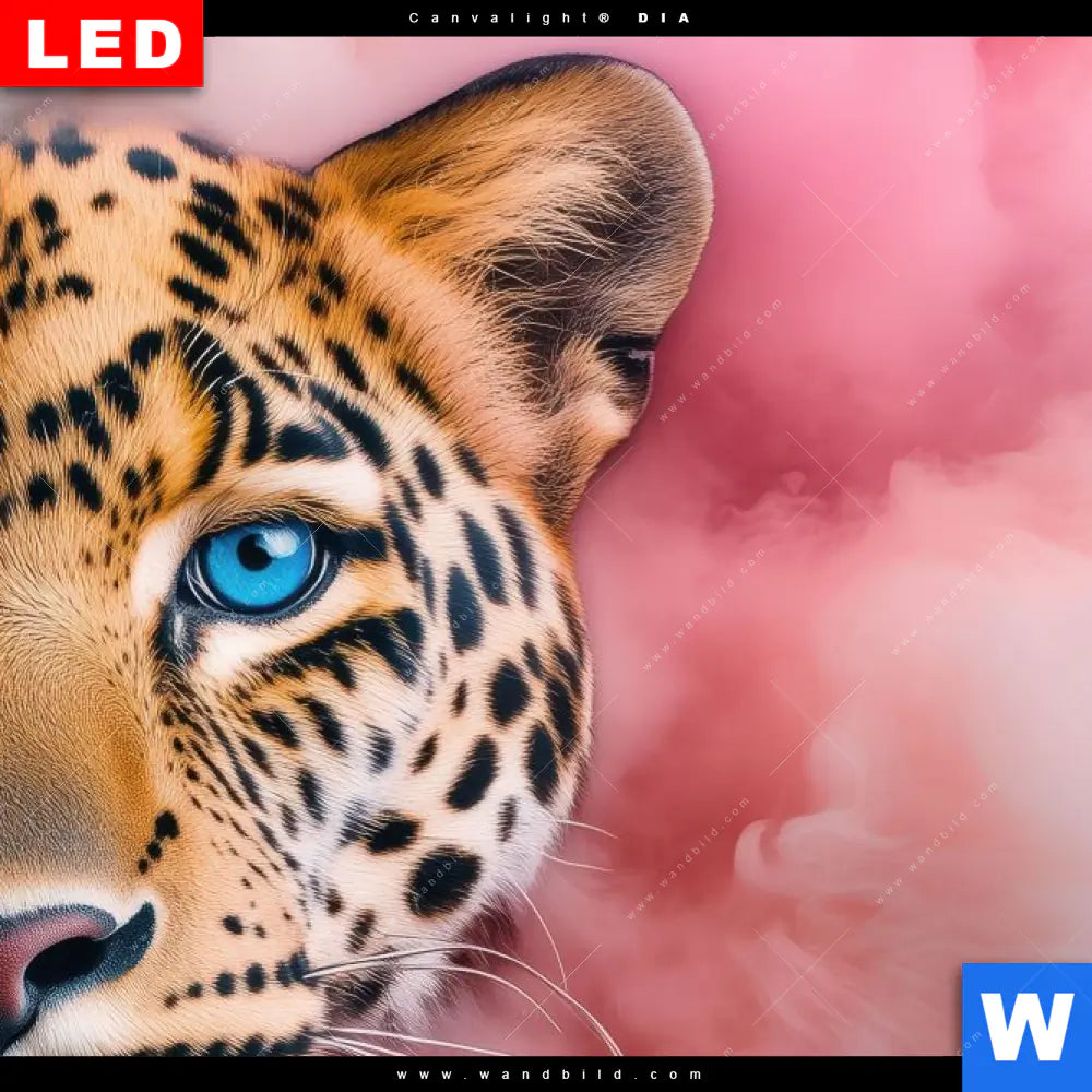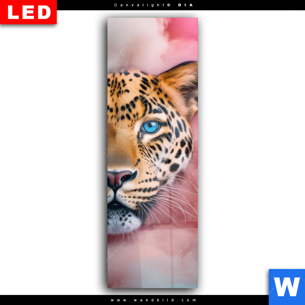 Wechselmotiv Acrylglas Canvalight® DIA | Leopard im Farbnebel | Schmal