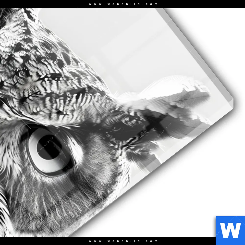 Acrylglasbild | Schwarz-Weiß Eulenportrait | Hochformat