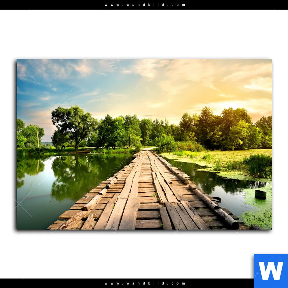 Leinwandbild | Alte Brücke am Fluss | Querformat