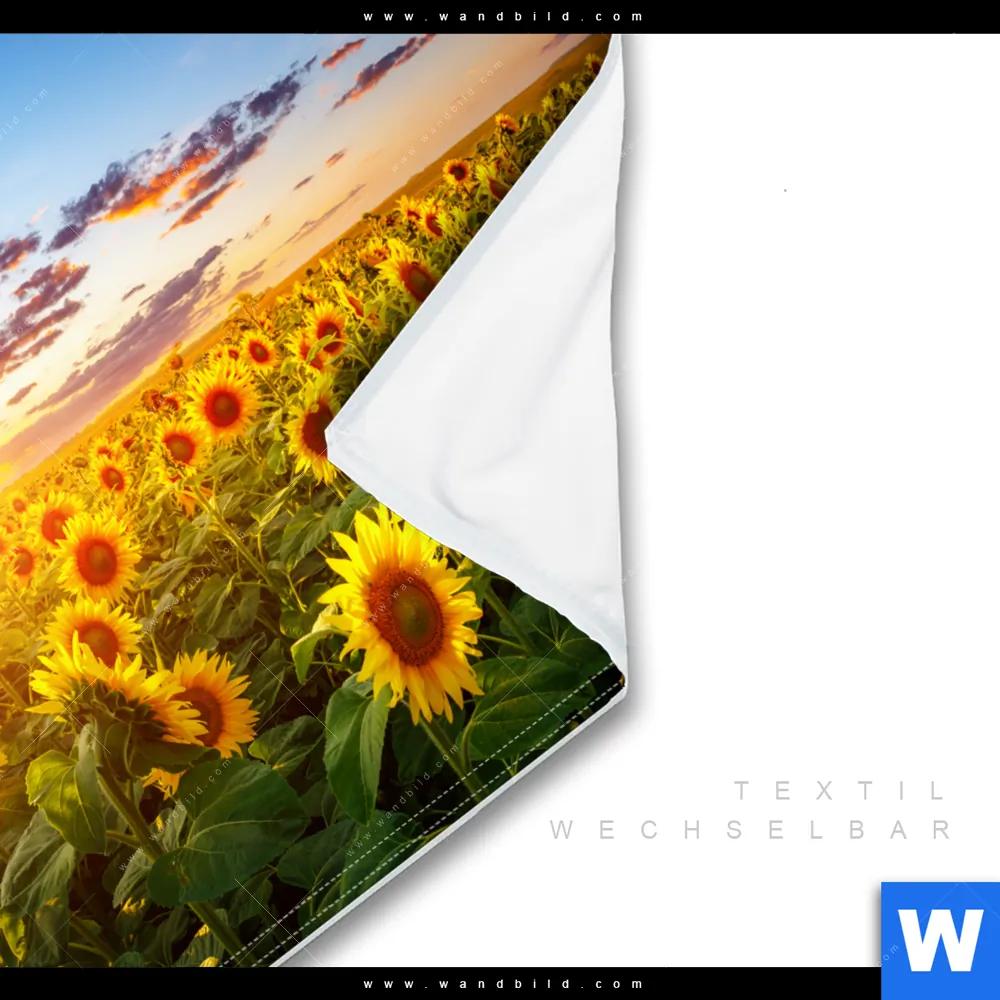 Wechselmotiv Textil | Leuchtend gelbe Sonnenblumen am Abend | Quadrat