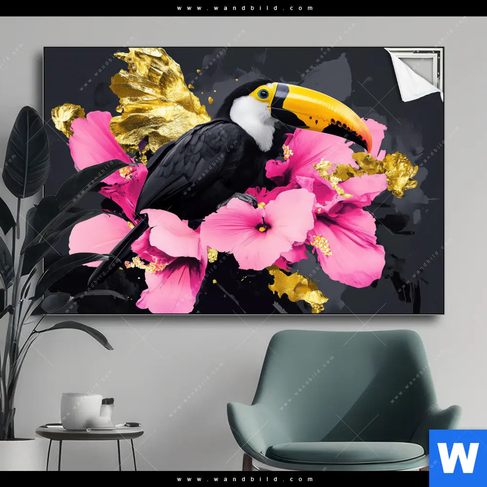 Spannbild | Exotischer Tukan mit Blüten | Querformat